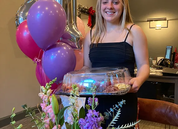 Custom packages can be delivered any day throughout the semester at varying times based on your students availability and ours. Customization and delivery starts at $100, with total pricing determined by what you ask us to include. This non-refundable fee is paid upfront to secure your date and just covers our time and your delivery. On the day of your delivery we will invoice you for the costs incurred purchasing all of the items for your customized delivery.